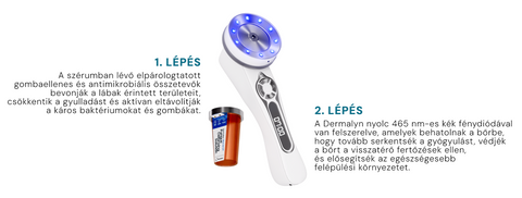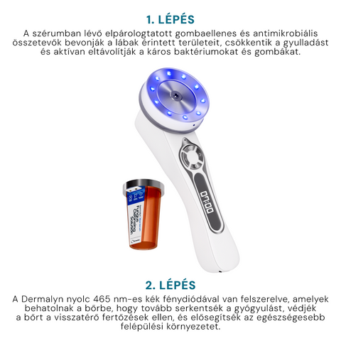A Dermalyn a természetes gombaölő szérumot és a kékfény-terápiát kombinálja. A szérum hatóanyagai mélyen behatolnak a bőrbe, míg a kék fény antibakteriális és gombaellenes hatásával segíti a gyógyulást.