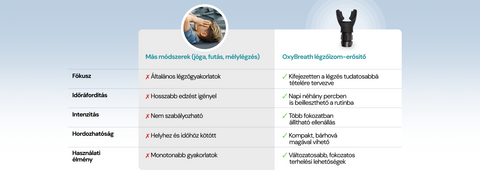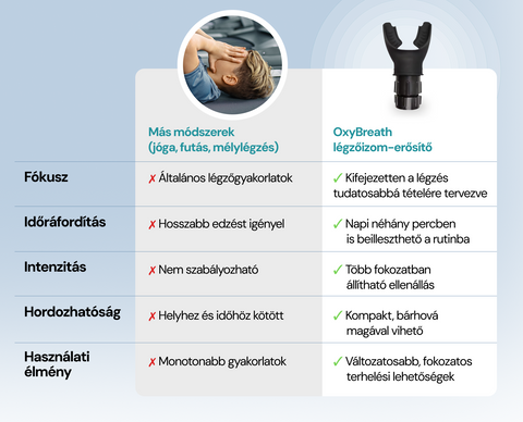 Az OxyBreath használata során a belégzés és kilégzés ellenállással történik, így a légzésért felelős izmok – köztük a rekeszizom és a bordaközi izmok – aktívabban dolgoznak. Ez hasonló ahhoz, mint amikor más izmainkat erősítjük: a rendszeres gyakorlás hozzájárulhat a légzés tudatosabb irányításához.