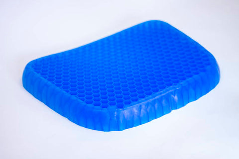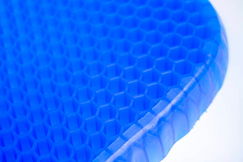 A zselés ülőpárna enyhíti a gerincre nehezedő nyomást azáltal, hogy a puha zselé egyenletesen osztja el a rácsos szerkezeten a súlyt.