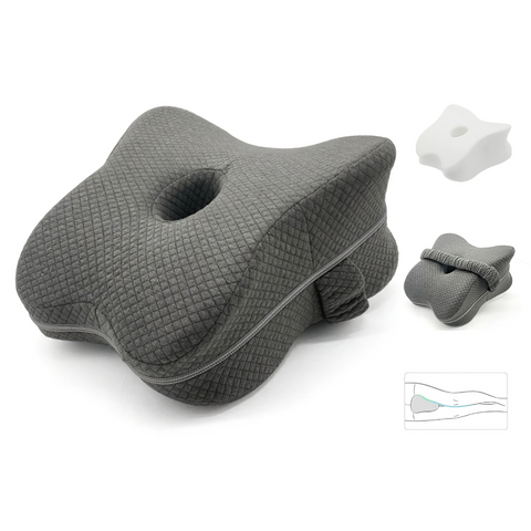 A Lábtámasztó Párna úgy lett megtervezve, hogy a sűrű memóriahab kényelmesen körülölelje a térdeket és megfelelő pozícióban, stabilan tartsa a lábat. A középen található ergonomikus mélyedésbe tökéletesen belesimul mindkét térdkalács, anélkül, hogy azok egymáshoz érnének alvás közben.