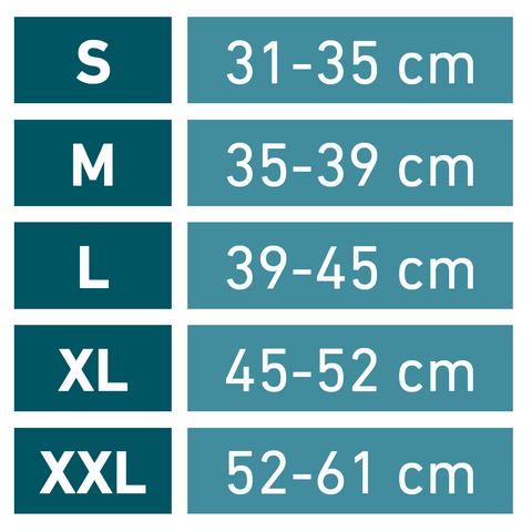 A térdvédőt húzza fel lábára úgy, hogy a térdkalács külső közepétől körülbelül 14 centiméterre, a combja alsó tájékán helyezkedjen el a térdvédő teteje. Figyeljen rá, hogy a patella gyűrű a térdkalácsán legyen. Akkor viseli jól, ha a térdvédő nem csúszik le a helyéről, nem szorít, de mégis enyhe kompressziót fejt ki térdére. Mérethiba esetén kérjük egyeztessen az ügyfélszolgálatunkkal.