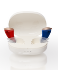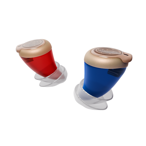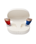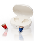 A készülékek színes jelöléssel vannak ellátva: kék = jobb fül, piros = bal fül. Ez egyértelmű azonosítást biztosít.